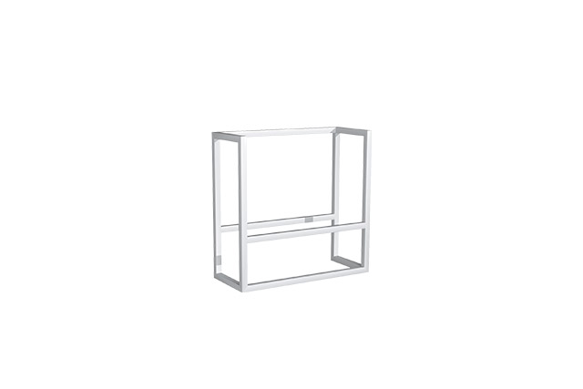 Accessories in painted steel. Lacquered MDF shelves.