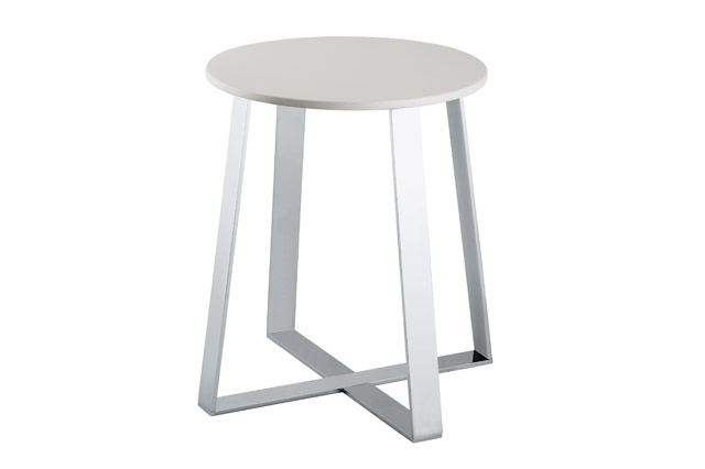 Stool_HC0300 STOOL SOTTOSOPRA ART. HC0300 ø 38 x H 40 x P 40 BRASS ACCESSORIES FINISHINGS OTHER INFO Chromed brass stool with impermeable sitting. suitable for shower. finishing: structure in shining chrome sitting in mat white. LEGENDA Cromo - Chrome